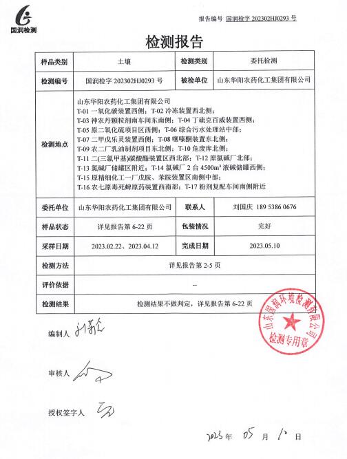 山東華陽農(nóng)藥化工集團(tuán)有限公司土壤檢測報(bào)告